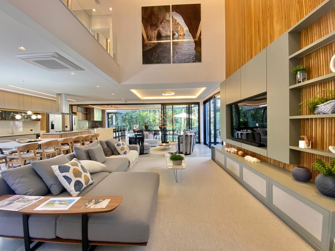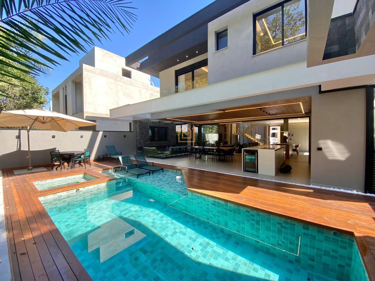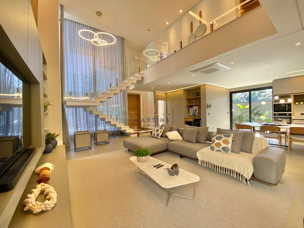 Com 5 suítes, esta residência possui uma área construída de 437.43m², perfeita para acomodar sua família com comodidade e sofisticação. Além disso, conta com uma variedade de ambientes, espaço gourmet, hidromassagem, lareira, SPA, sauna e solarium, para garantir que cada momento seja vivido com estilo e requinte.