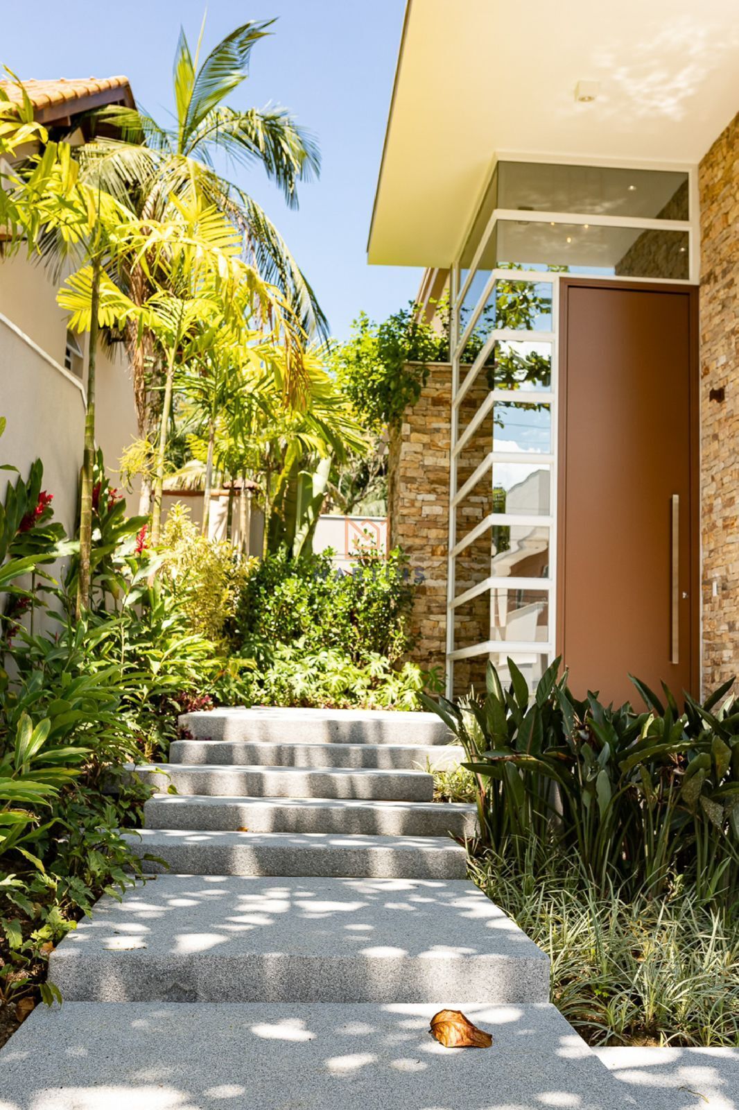 A varanda conta com um espaço gourmet integrado à cozinha americana completa. A casa também dispõe de dependência para colaborador, piscina com borda infinita e espelhos d'água, spa, churrasqueira, cervejeira, infraestrutura para chopeira e máquina de gelo. O sistema de aquecimento solar e energia fotovoltaica garantem sustentabilidade e economia. Há ainda um depósito e 4 vagas de garagem. Para segurança, o imóvel está equipado com CFTV e 8 câmeras de monitoramento.
